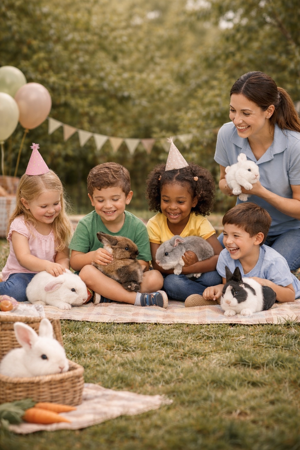 Party Hoppers brings friendly, gentle bunnies to your celebration for cuddles, giggles, and magical moments kids will remember forever.