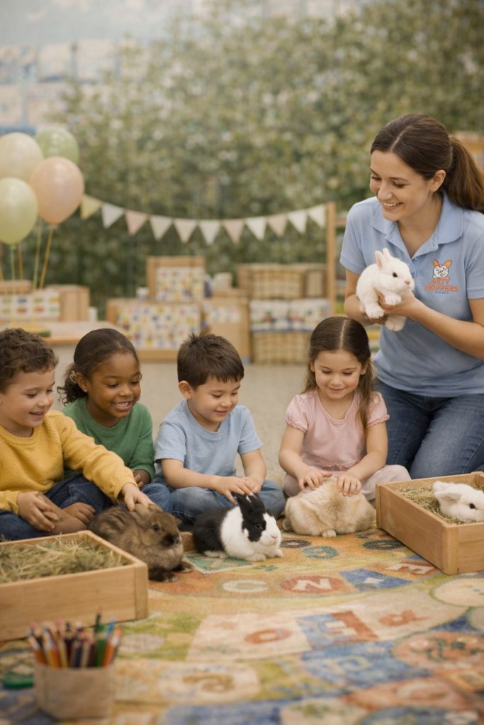 Our school and early learning visits are designed to be calm, engaging, and educational. Children enjoy gentle, supervised bunny time while learning about kindness, respect, and caring for animals.